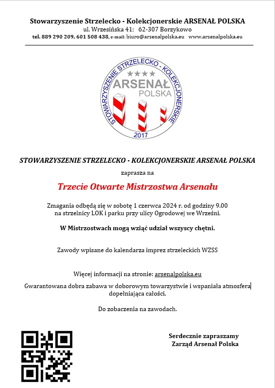 Serdecznie zapraszamy 09 czerwca 2024 roku na strzelnicę KS TARCZA Szamotuły w Mutowie. Tym razem walczymy o TYTUŁ MISTRZOWSKIEGO KLUBU. Początek zawodów godz. 9.00. Zapisy do godz 11.00 w dniu zawodów.